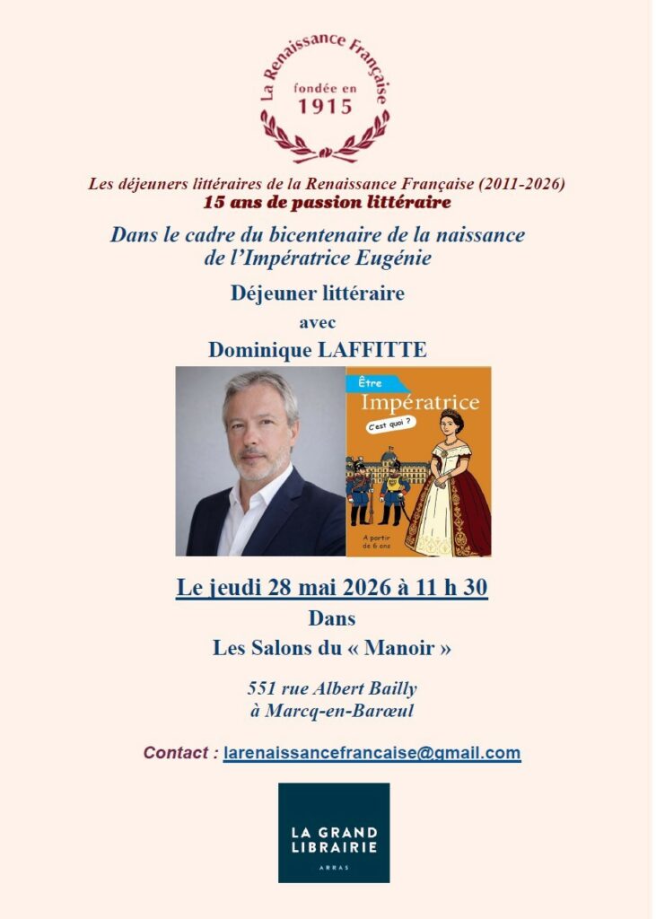 Le jeudi 03 décembre 2026 à Arras – Dans le cadre de l’année André Malraux, déjeuner littéraire avec Michaël de SAINT-CHÉRON, Président du Centre international de recherches André Malraux, qui nous présentera son dernier ouvrage « Malraux : une vie au miroir de l’art et du sacré » Éditions Acte Sud 2026.